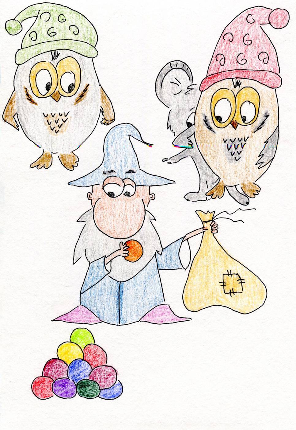 Друзья рассказали мышонку, что из сказочной страны пропал весь урожай, а они направляются в пещеру, чтобы забрать его и проучить злодея. Мышонок сказал, что знает, где живёт Злой Волшебник, и может их проводить.