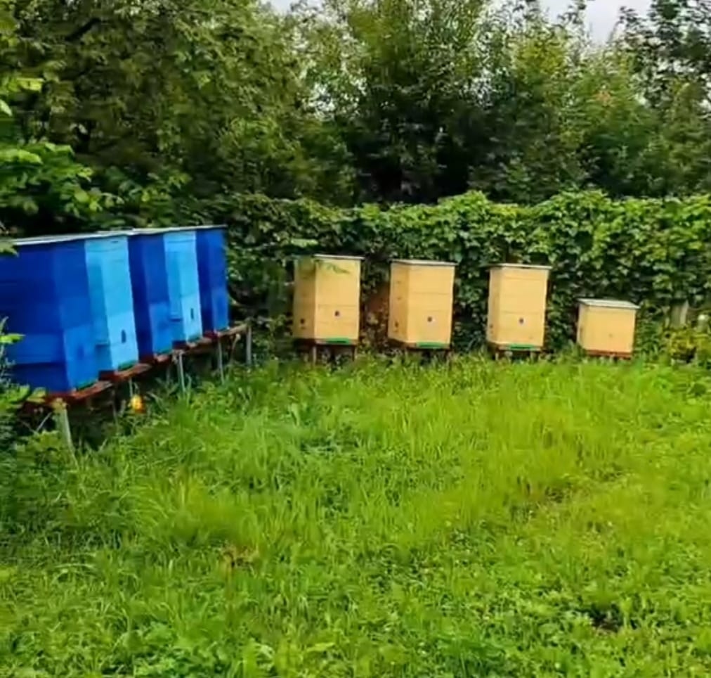 В 2024 году нам достались поместные пчелы в двух пчелопакетах. Это очень злые и агрессивные насекомые, к которым практически невозможно подойти: они мгновенно атакуют и яростно жалят. Умудрились даже пролезть в мой защитный костюм и ужалили в лицо, живот, руки и шею. Было очень больно. И мы сделали так: поздно вечером закрыли летки и перевернули ульи летками к сплошному забору, а утром развернули обратно. Пчелы были дезориентированы. Им пришлось долго соображать, чтобы понять, что произошло: после облета ульи с пчелами нельзя трогать и двигать. В нашем случае это помогло: наши «подопечные» успокоились, и с ними можно было работать.