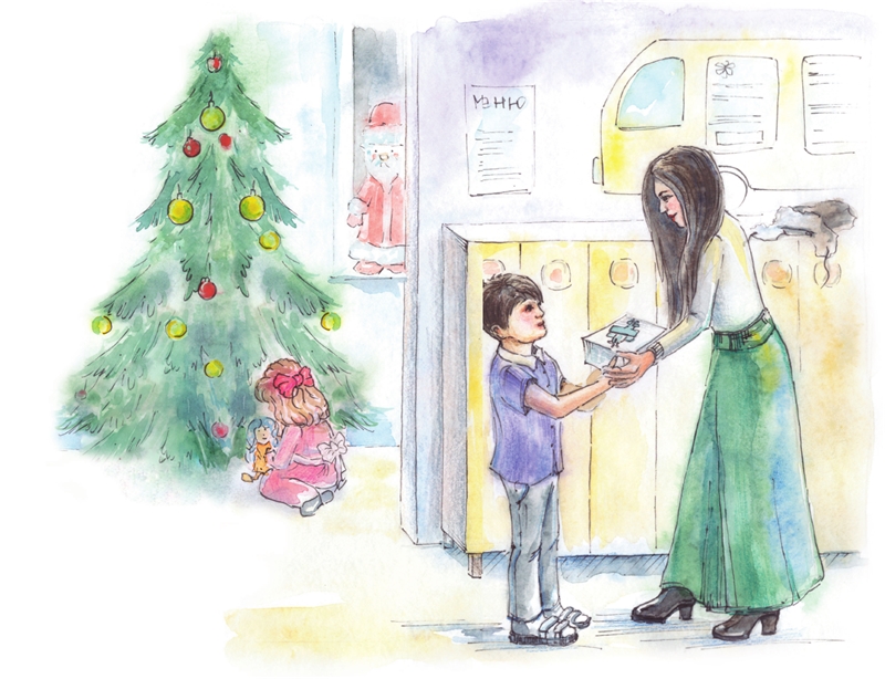 – Мама! – радостно закричал Валерик и побежал в раздевалку. – Смотри, что мне сегодня на ёлке подарили. – И он протянул маме коробку с самолётом-конструктором.