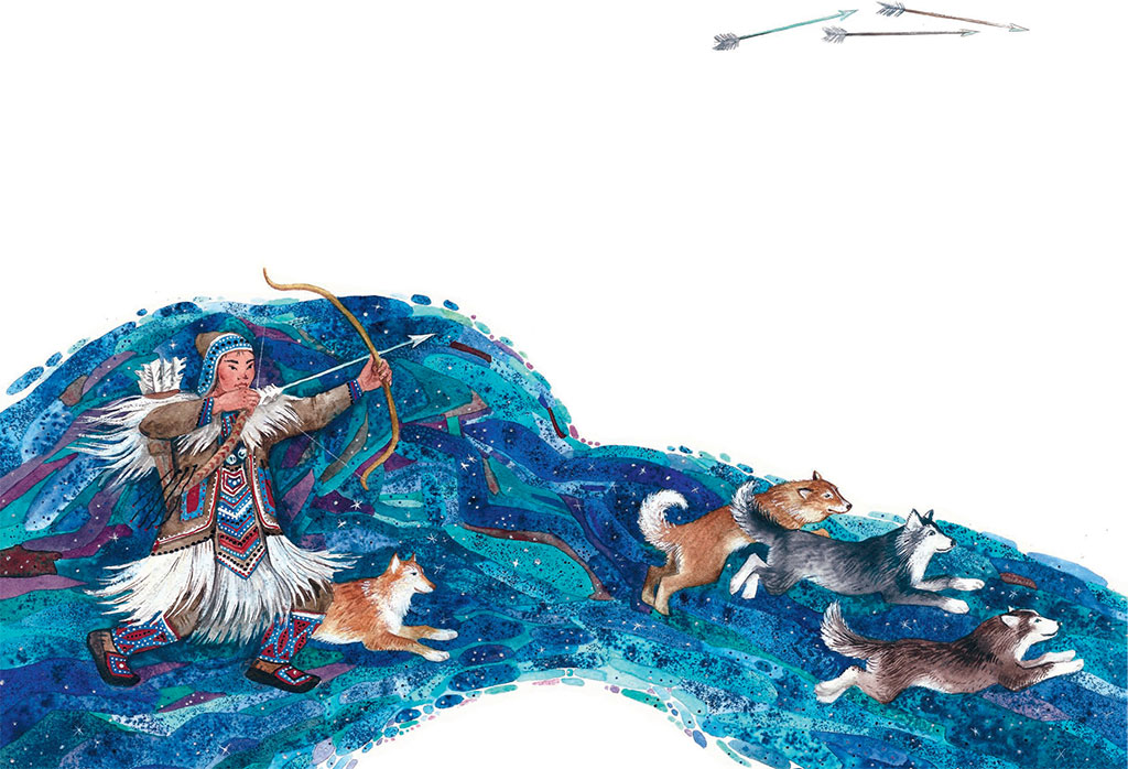 Жил когда-то один охотник по имени Лямта. У него не было ни дома, ни семьи. Всю свою жизнь он скитался по тайге, ночевал где придётся и никогда не выходил за пределы своего леса. Однажды на охоте он погнался за молодым оленем. Преследование продолжалось до темноты. Олень пытался скрыться на болотах и в самой дремучей части тайги. Он петлял среди кустов и деревьев, почти не оставляя следов, почти не касаясь веток, но Лямта не отставал от него ни на шаг. Они всё бежали и бежали. Вдруг тайга кончилась, и Лямта оказался за пределами родного леса. Охотник остановился и удивлённо посмотрел на огромное небо. Он ещё никогда не видел столько звёзд. Олень, не теряя ни мгновения, снова скрылся в лесу, но охотник уже позабыл о нём. Ветер подтолкнул его в спину, и Лямта пошёл вперёд навстречу новому миру, неведомому и загадочному.