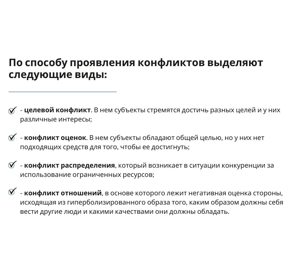 Классификация причин конфликтов и анализ причин в вашей организации/компании – первый шаг к управлению конфликтом, поскольку именно он дает понимание того, что нужно «починить», чтобы этот механизм работал исправно.