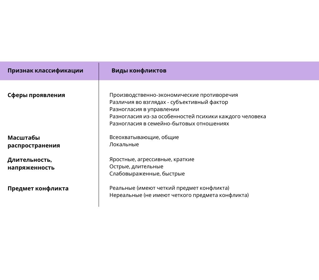 2. Какие конфликты в ней возникают? Классифицируйте их (см. строку «виды конфликтов»). Помните, что не все конфликты очевидны и находятся на поверхности, проанализируйте конфликты в скрытой стадии.