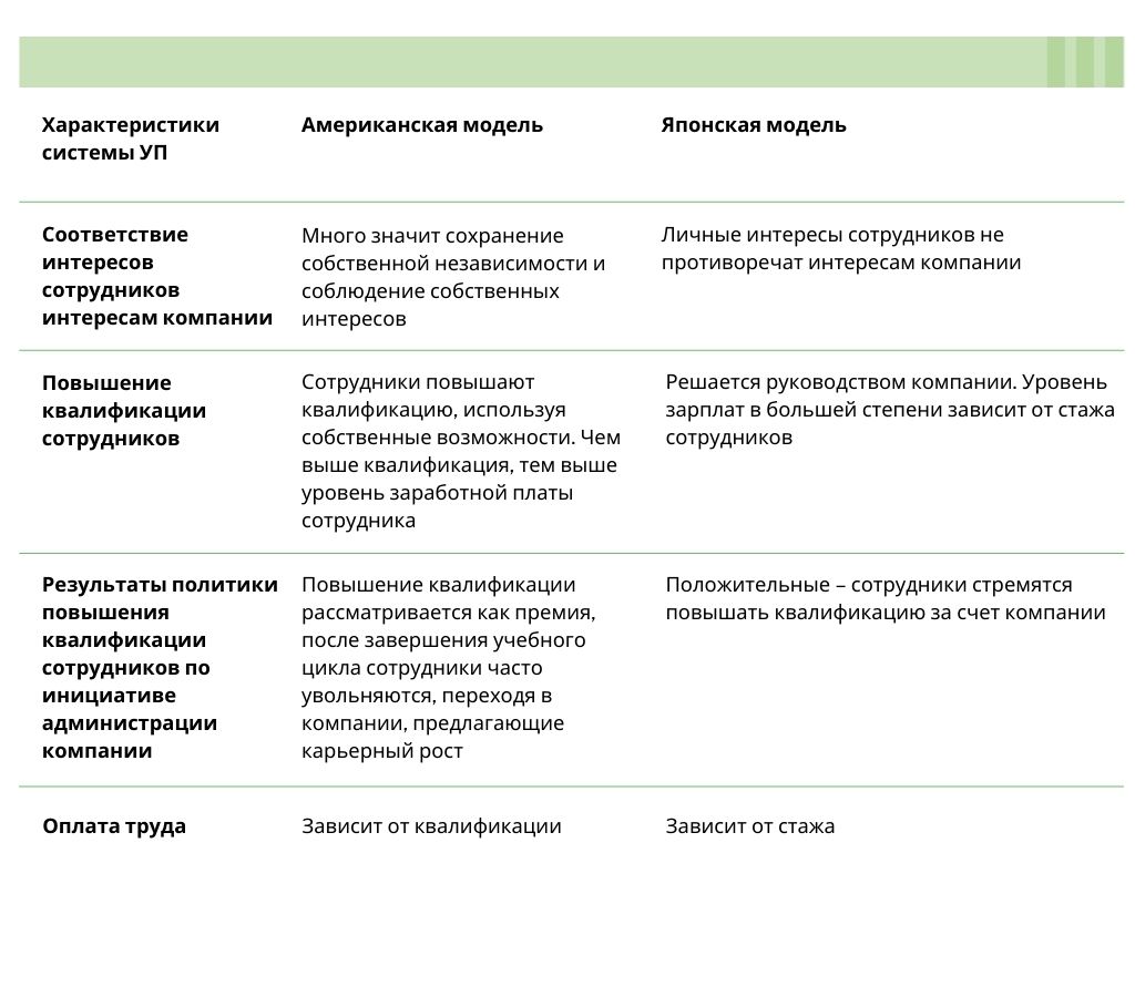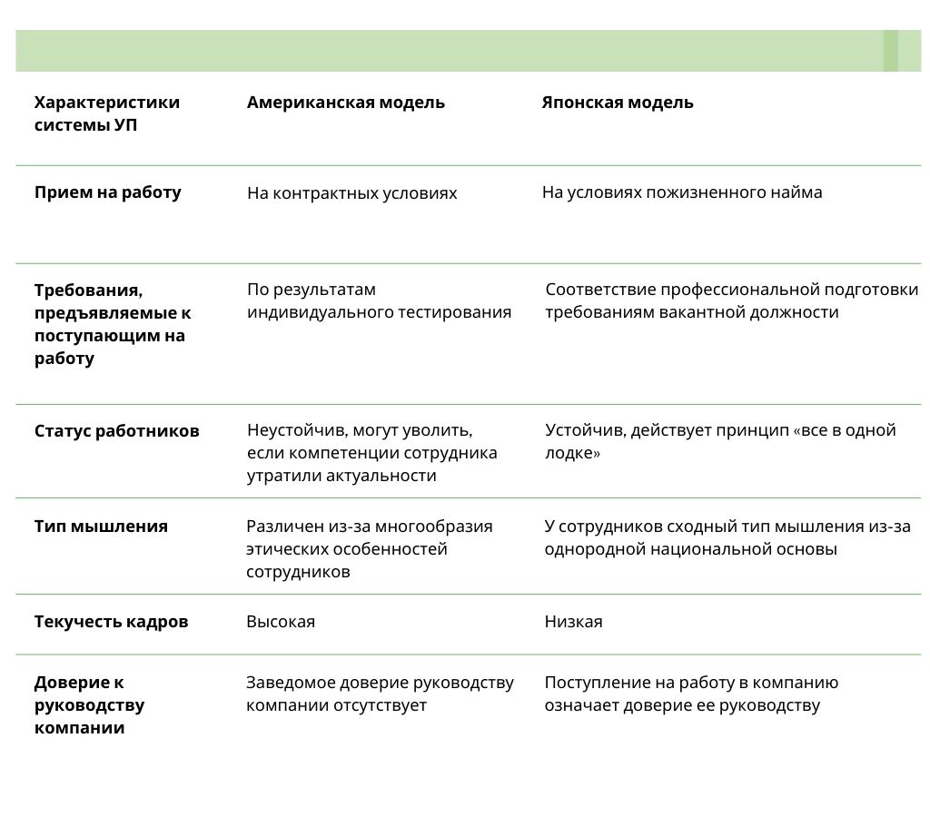 В таблице отражены различия в системах управления персоналом