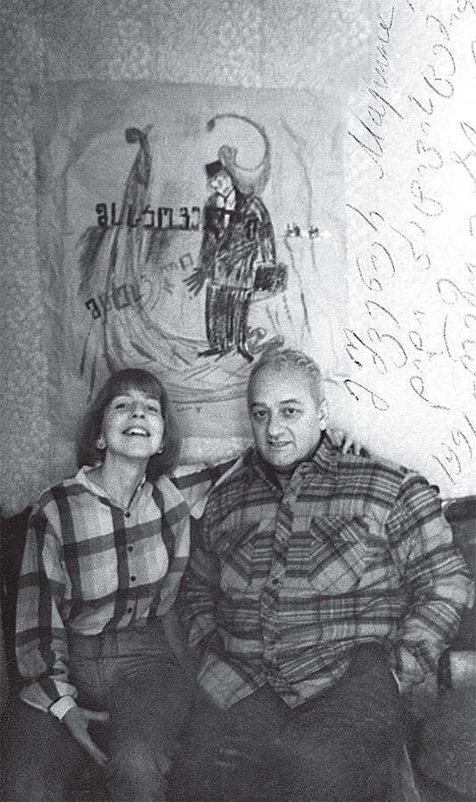 Будучи в Москве, Резо Габриадзе часто наведывался в мастерскую Леонида Тишкова в Фурманном переулке. Огромные комнаты опустевше го старинного дома были наполнены до самой крыши творчеством – в нем нашли себе приют десятки художников, без спроса въехавшие туда со своими кисточками и холстами. Леонид увлекался созданием книг, и Резо на нескольких листах картона за вечер сочинил-нарисовал книгу под названием «Цибайш», посвятив ее китайскому художнику Ци Байши. Где обитает эта книга, теперь никто сказать не может, но осталась фотография, которую сделал Лёня Тишков фотоаппаратом «Практи ка», купленным в Германской Демократической Республике на гонорар за свои карикатуры в журнале «Freie Welt». Все исчезает со временем, но иногда фотографии делают нашу память зримой.