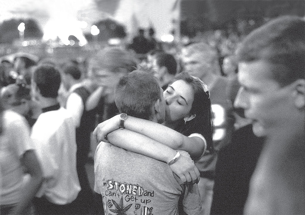 В центре пребывающего в движении мира поцелуй остановил Время. Взгляд замер на этом Событии, оно приобрело нереальную отчетливость, а все остальное размыто и мерцает вокруг. В фокусе оказалось то, что действительно важно – здесь и сейчас. Свершается странное и неочевидное открытие: люди в этом городе не только ходят, смотрят, шевелятся, а еще и любят.
