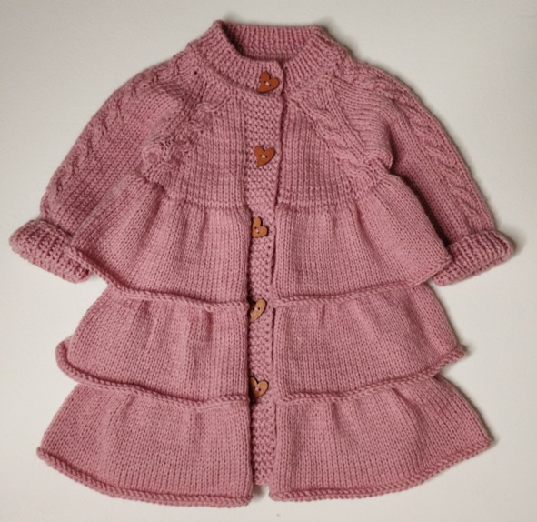 3 ряд: кромочная, 11 лицевых, прибавка из протяжки, 2 лицевых, прибавка из протяжки, 10 лицевых, прибавка из протяжки, 2 лицевых, прибавка из протяжки, 26 лицевых, прибавка из протяжки, 2 лицевых, прибавка из протяжки, 10 лицевых, прибавка из протяжки, 2 лицевых, прибавка из протяжки, 11 лицевых, 1 изнаночная