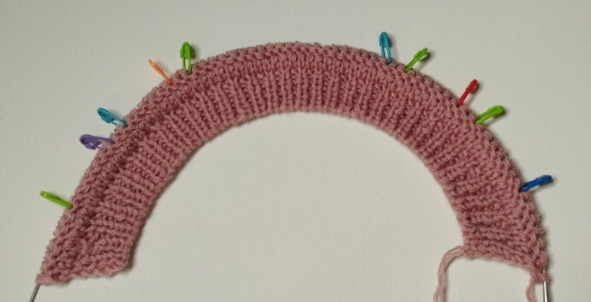 Далее замыкаем вязание в круг, 18 и 20 ряд будут лицевыми рядами, а не изнаночными.
