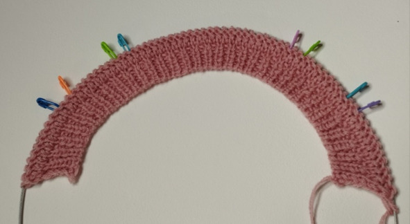 2 ряд: кромочная, 77 изнаночных (78 петель)