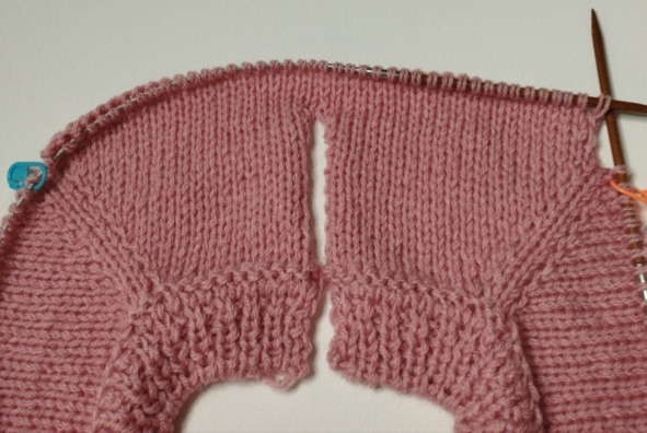 В 43 ряду в начале ряда переснимаем на спицу 3 петли, не провязывая, начало ряда смещаем на 3 петли, можно повесить маркер.