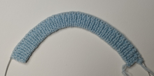 1 ряд – кромочная, (1 лицевая, 1изнаночная) – повторить 3 раза, (1 лицевая, накид на себя) – повторить 47 раз, 1 изнаночная, (1 лицевая, 1 изнаночная) – повторить 3 раза