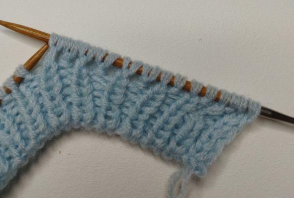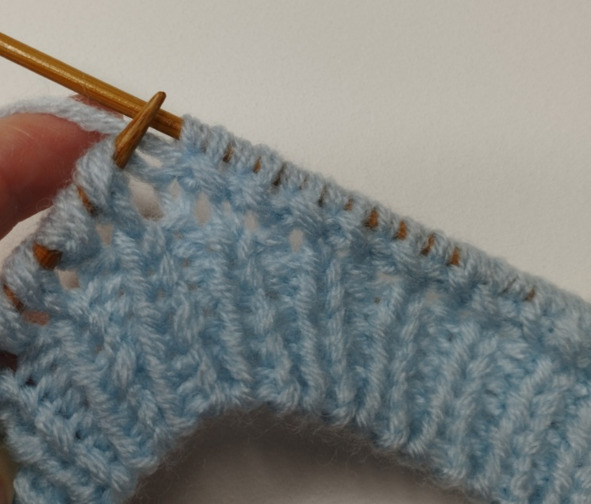 22 ряд: кромочная, (1 изнаночная, 1 лицевая) – повторить 3 раза, (3 изнаночных, 1 лицевая) – повторить 21 раз, (1 изнаночная, 1 лицевая) – повторить 2 раза, 2 изнаночных