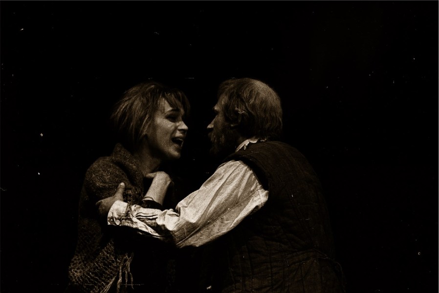 Лучшей сценой дуэта Пепел – Василиса (Даль – Дорошина) была сцена объяснения во втором акте. Волчек выстроила ее с отчаянной страстностью: Василиса, как кавалерист, наступает, и под ее натиском вор Васька изгибается, уворачивается, как от укуса змеи. Хотела того Волчек или нет, но эта мизансцена могла соперничать по пластике с хореографической миниатюрой. Голова мужчины резко запрокинута назад, и в невероятно, по-женски изогнутой шее читается вся трагедия человека. При всей наступательной агрессивности в игре Нины Дорошиной проглядывали слом и отчаяние.