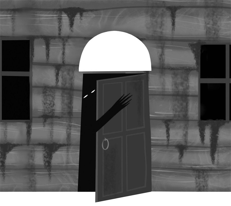 Стены из крупного бревна, как губка, впитали в себя болотную сырость и гниль. На потресканной крыше, на оконных рамах рваным тряпьём висела тина. Все покосившиеся окна этого мрачного дома были разного размера и находились на разном уровне. Внутри, от окна к окну, переплывал жёлто-коричневый тусклый огонёк. Казалось, что его кто-то несёт. Кто-то, кто полностью скрыт сырым мраком дома.
