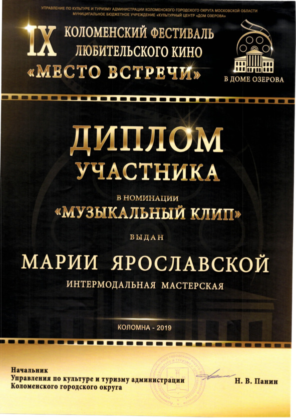 Участие в международном кинофестивале «Место встречи», участвовал мой клип «Воспоминание» и моя музыка в проекте участницы проекта «Интермодальная мастерская» Татьяны Завьяловой (фильм о Санкт-Петербурге, номинация «видеопутешествие»).