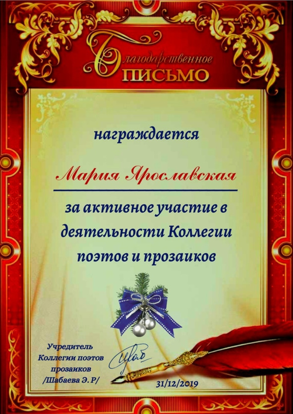 Мария Ярославская для Коллегии Поэтов и Прозаиков