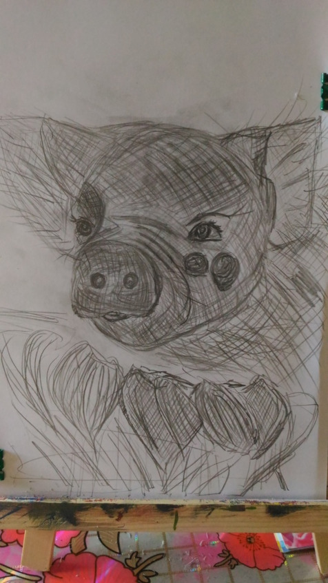 Рисунки Марии Ярославской, фото автора (слева работа Дмитрия Тимкина, нужно было сделать копию), так же есть рисунок любимого певца Гакта (карандаш, акварель), главного героя аудиокниги-фэнтези «Зельеделец» Бокора., несколько первых портретов, свинки —символа 2019 счастливого года.