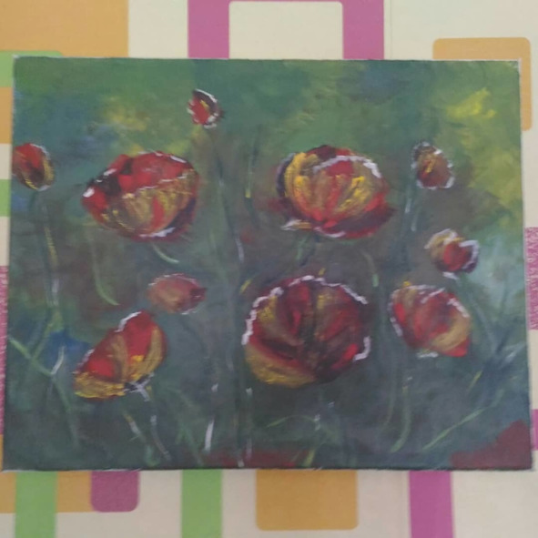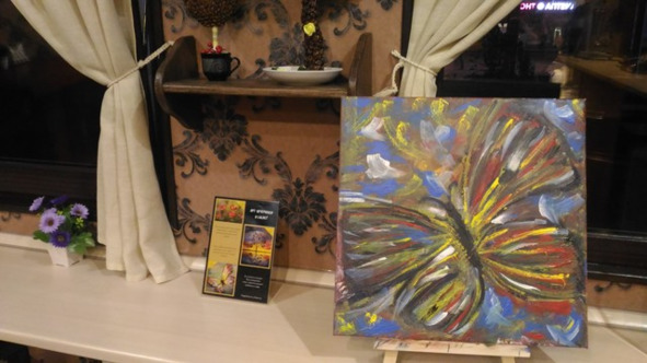 Было приятно увидеть мою работу в кофейне, как образец вечеринки, кстати, холсты, кисти, акрил, мольберты предоставляются и любимый кофе в подарок!