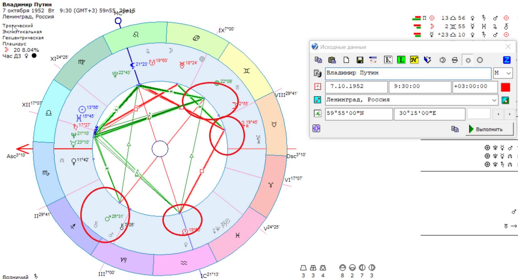 (Рис.1) Натальная карта Путина