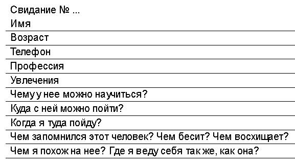 ПрактикаПосле каждого свидания заполняй анкету в своей тетради вот по этой форме: