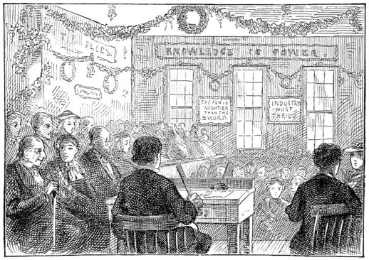 A little shamefaced girl lisped, “Mary had a little lamb,” etc., performed a compassion-inspiring curtsy, got her meed of applause, and sat down flushed and happy.