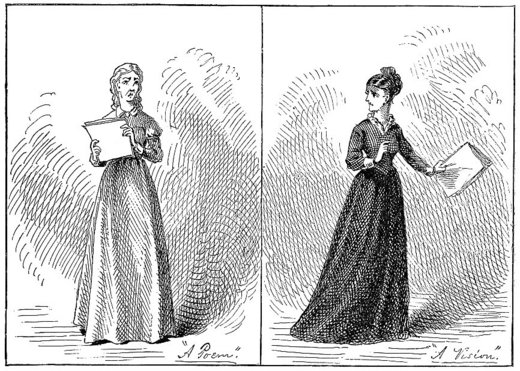 Then arose a slim, melancholy girl, whose face had the “interesting” paleness that comes of pills and indigestion, and read a “poem.” Two stanzas of it will do: