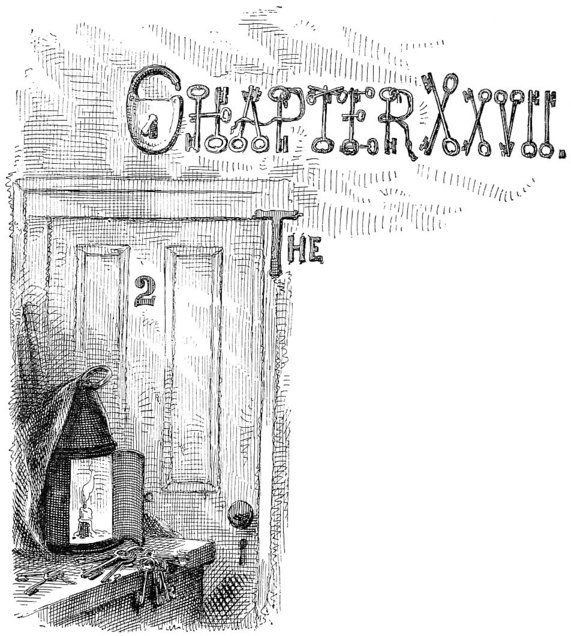Tuesday the boys had the same ill luck. Also Wednesday. But Thursday night promised better. Tom slipped out in good season with his aunt’s old tin lantern, and a large towel to blindfold it with. He hid the lantern in Huck’s sugar hogshead and the watch began. An hour before midnight the tavern closed up and its lights (the only ones thereabouts) were put out. No Spaniard had been seen. Nobody had entered or left the alley. Everything was auspicious. The blackness of darkness reigned, the perfect stillness was interrupted only by occasional mutterings of distant thunder.