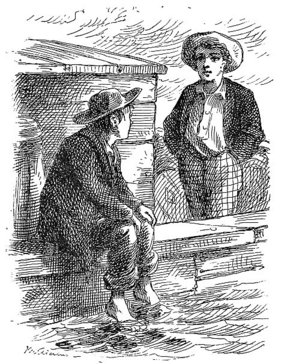 Two men entered. Each boy said to himself: “There’s the old deaf and dumb Spaniard that’s been about town once or twice lately – never saw t’other man before.”
