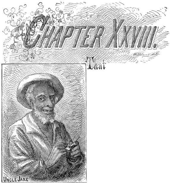 “In Ben Rogers’s hayloft. He lets me, and so does his pap’s nigger man, Uncle Jake. I tote water for Uncle Jake whenever he wants me to, and any time I ask him he gives me a little something to eat if he can spare it. That’s a mighty good nigger, Tom. He likes me, becuz I don’t ever act as if I was above him. Sometime I’ve set right down and eat with him. But you needn’t tell that. A body’s got to do things when he’s awful hungry he wouldn’t want to do as a steady thing.”