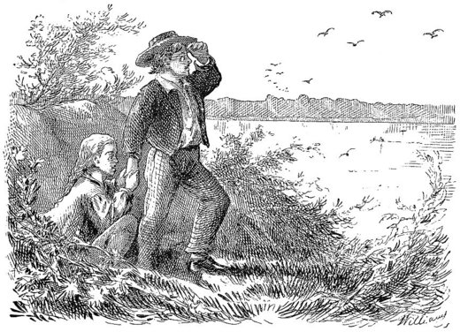“Now you see this bluff here looks all alike all the way down from the cave hollow – no houses, no wood-yards, bushes all alike. But do you see that white place up yonder where there’s been a landslide? Well, that’s one of my marks. We’ll get ashore, now.”
