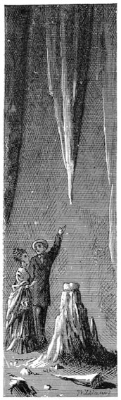 Injun Joe’s bowie-knife lay close by, its blade broken in two. The great foundation-beam of the door had been chipped and hacked through, with tedious labor; useless labor, too, it was, for the native rock formed a sill outside it, and upon that stubborn material the knife had wrought no effect; the only damage done was to the knife itself. But if there had been no stony obstruction there the labor would have been useless still, for if the beam had been wholly cut away Injun Joe could not have squeezed his body under the door, and he knew it. So he had only hacked that place in order to be doing something – in order to pass the weary time – in order to employ his tortured faculties. Ordinarily one could find half a dozen bits of candle stuck around in the crevices of this vestibule, left there by tourists; but there were none now. The prisoner had searched them out and eaten them. He had also contrived to catch a few bats, and these, also, he had eaten, leaving only their claws. The poor unfortunate had starved to death. In one place, near at hand, a stalagmite had been slowly growing up from the ground for ages, builded by the water-drip from a stalactite overhead. The captive had broken off the stalagmite, and upon the stump had placed a stone, wherein he had scooped a shallow hollow to catch the precious drop that fell once in every three minutes with the dreary regularity of a clock-tick – a dessert-spoonful once in four and twenty hours. That drop was falling when the Pyramids were new; when Troy fell; when the foundations of Rome were laid; when Christ was crucified; when the Conqueror created the British empire; when Columbus sailed; when the massacre at Lexington was “news.” It is falling now; it will still be falling when all these things shall have sunk down the afternoon of history, and the twilight of tradition, and been swallowed up in the thick night of oblivion. Has everything a purpose and a mission? Did this drop fall patiently during five thousand years to be ready for this flitting human insect’s need? and has it another important object to accomplish ten thousand years to come? No matter. It is many and many a year since the hapless half-breed scooped out the stone to catch the priceless drops, but to this day the tourist stares longest at that pathetic stone and that slow-dropping water when he comes to see the wonders of McDougal’s cave. Injun Joe’s cup stands first in the list of the cavern’s marvels; even “Aladdin’s Palace” cannot rival it.