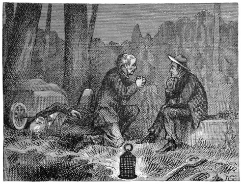 Two or three minutes later the murdered man, the blanketed corpse, the lidless coffin, and the open grave were under no inspection but the moon’s. The stillness was complete again, too.