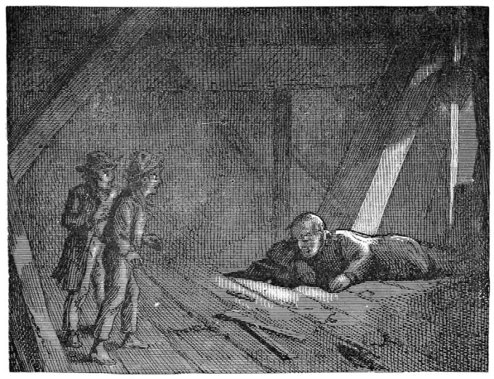 Tom, quaking with fear, yielded, and put his eye to the crack. His whisper was hardly audible when he said: