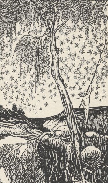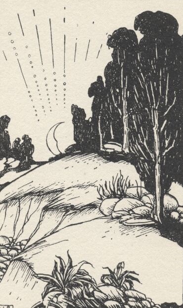 So I cried a little, which was natural, I suppose, for one of my age, and after I was rested I got a basket and started for a place on the extreme rim of the circle, where the stars were close to the ground and I could get them with my hands, which would be better, anyway, because I could gather them tenderly then, and not break them. But it was farther than I thought, and at last I had to give it up; I was so tired I couldn’t drag my feet another step; and besides, they were sore and hurt me very much.