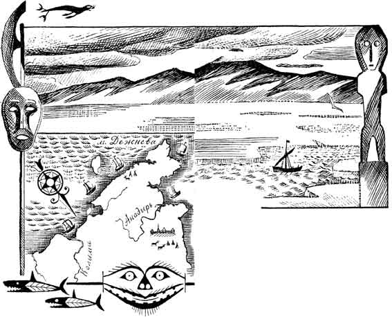 Кряжистый, бородатый устюжанин, хоть и был грамотен, едва ли знал, что за полтора столетия до него восточное побережье Нового Света было открыто великим водителем каравелл. Дежнев не знал, что северный край Нового Света лежал по левую руку от него, когда коч под кожаным парусом вошел в узкий пролив. Но если он побывал на островах «зубатых людей», то в спокойный, ясный день мог видеть снежный, как бы оскаленный берег той страны, которую ближние потомки назвали Большой Землей.