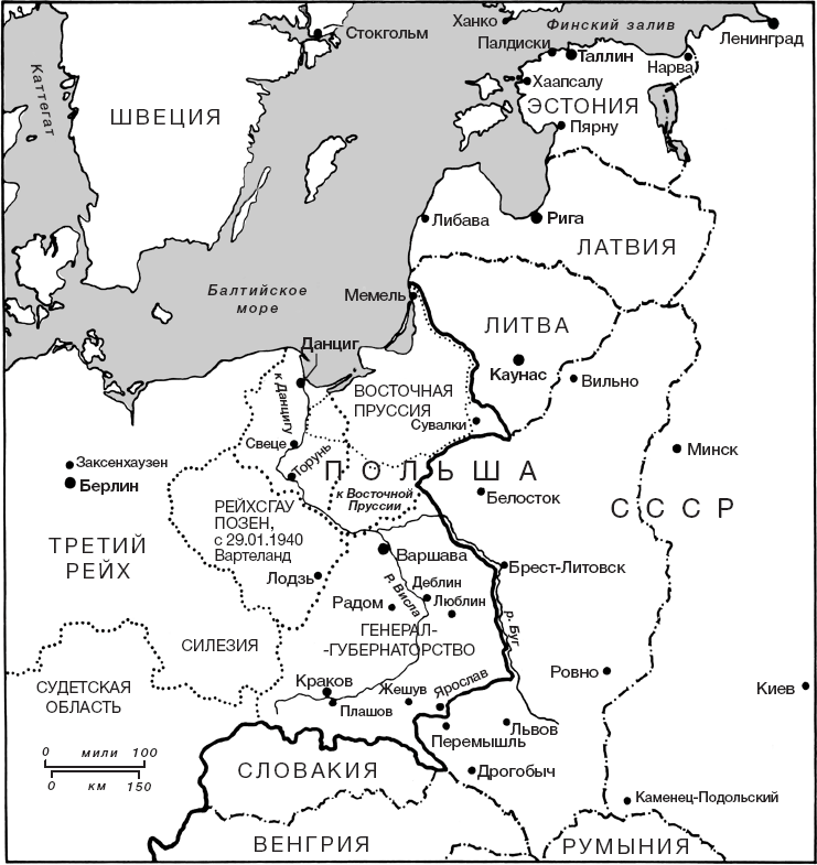Под властью Германии оказались 22 миллиона поляков. 29 сентября, когда Риббентроп вернулся в Берлин, Советский Союз подписал Пакт о взаимопомощи с маленьким балтийским государством Эстонией, который давал право СССР занять эстонские военно-морские базы в Нарве, Палдиски, Хаапсалу и Пярну. Через шесть дней подобный договор был заключен с Латвией, а еще через одиннадцать – с Литвой. Вполне естественно, что Гитлер тоже не хотел оставлять восточную границу своего тысячелетнего рейха беззащитной. В секретной директиве № 5 от 30 сентября он отдал распоряжение «постоянно укреплять и превращать в линию военной защиты, обращенную на Восток», польские приграничные земли, а также отметил, что «гарнизоны, необходимые для этой цели, в конечном счете будут двинуты за политические пределы рейха».