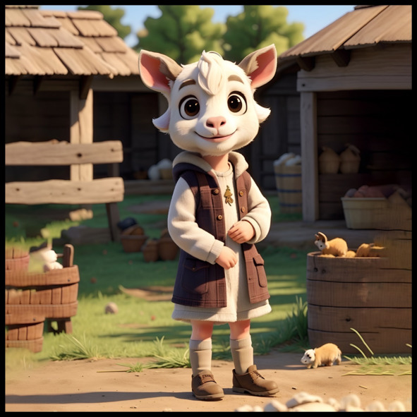 A turning point arrives when the annual sheep shearing begins. As the farm owner, Tom, carefully collects the sheep’s wool, Chills eagerly joins the line, hoping to be treated just like the other sheep. However, to her surprise, Tom bypasses her, instead tending to her milk, as goats offer a different kind of contribution to the farm.