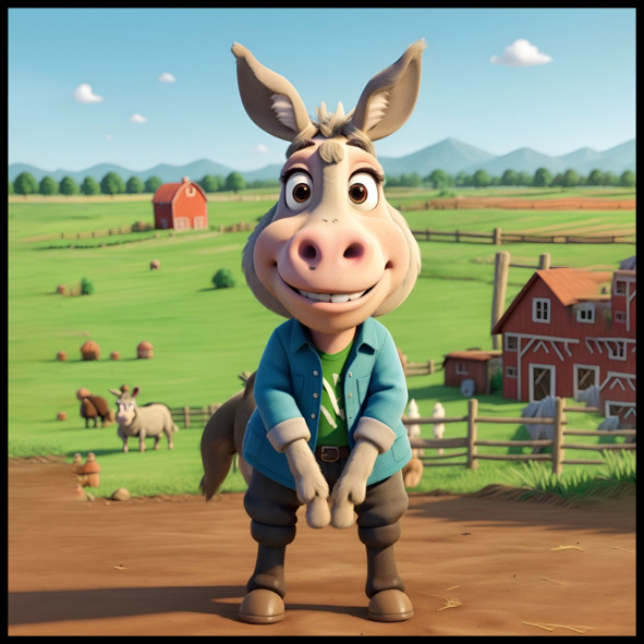 Living on a bustling farm alongside pigs, sheep, and geese, Spike the donkey yearns to be more than just an ordinary farm animal. Just beyond the fences lies a racetrack where majestic horses thunder by, participating in exhilarating races. Spike is enchanted by these graceful creatures and frequently sneaks away to watch them train and compete.
