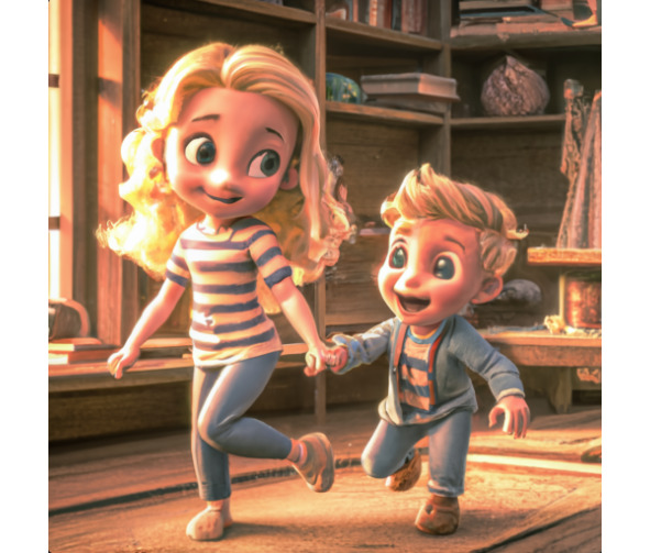 On this particular day, the sun streamed through the curtains, painting the room in a golden glow. Karina rubbed her sleepy eyes and stretched her arms, ready to embrace the day ahead. She could hear the faint sound of her brother, Patrick, bustling about in his room next door, and she couldn’t wait to join him for their morning playtime.