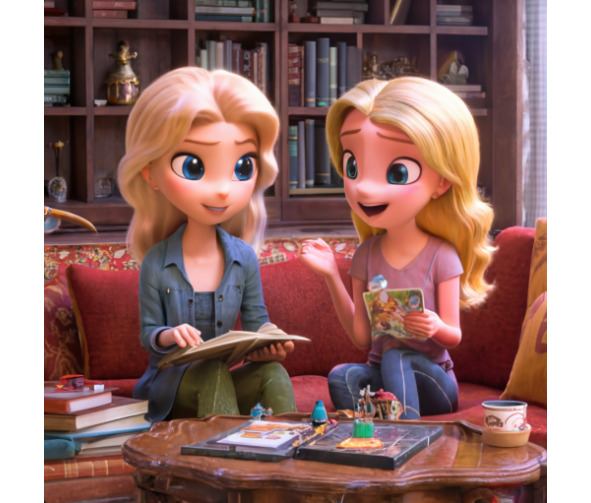 In a cozy little town nestled between rolling hills and whispering trees, there lived a cheerful blonde girl named Karina. She resided in a snug cottage with her loving family, the Robinsons. Her father, Jack, was a kind-hearted man who worked at the local bakery, filling the air with the aroma of freshly baked bread each morning. Her mother, Amanda, had a gentle smile that could brighten even the gloomiest of days, and she spent her time caring for their home and garden. Together, they created a warm and welcoming atmosphere that made their house feel like the heart of the neighborhood.