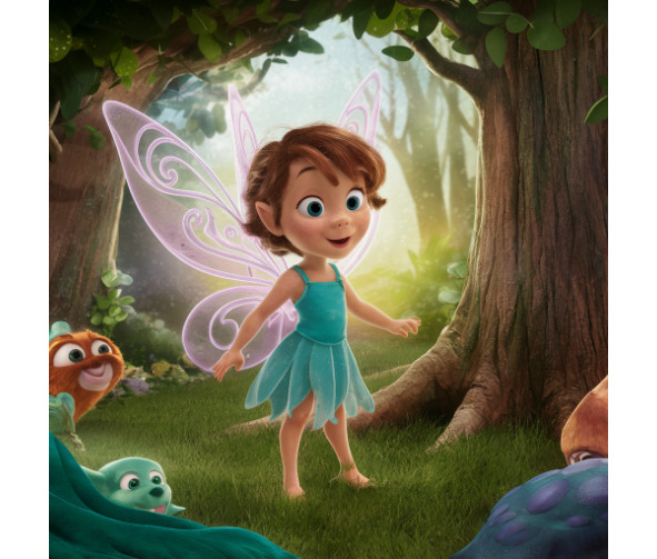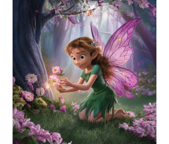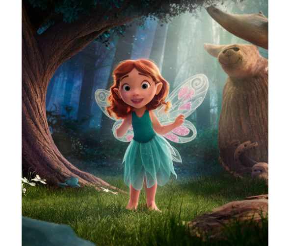 In the heart of a lush, green forest, where the trees whispered secrets to one another and the sunlight danced through the leaves, there lived a young forest fairy named Melanie. With hair the color of golden sunshine and wings adorned with delicate patterns like the petals of a flower, Melanie was a vision of beauty and grace.