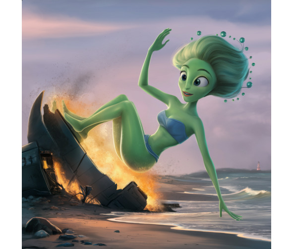In a galaxy far, far away, there lived a young alien girl named Mara. Mara was unlike any other creature in the universe. With shimmering purple skin and sparkling green eyes, she lived aboard a magnificent spaceship that soared through the vast expanse of space.