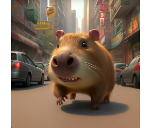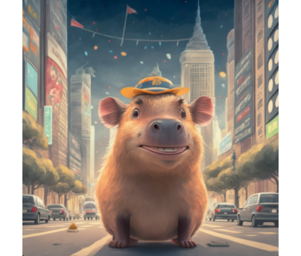 Солнце начало медленно опускаться за высокие небоскребы, отбрасывая длинные тени на городскую площадь. Шелби, капибара, прогуливалась по оживленной площади, ее носик подергивался от любопытства, когда она изучала достопримечательности и звуки вечера.