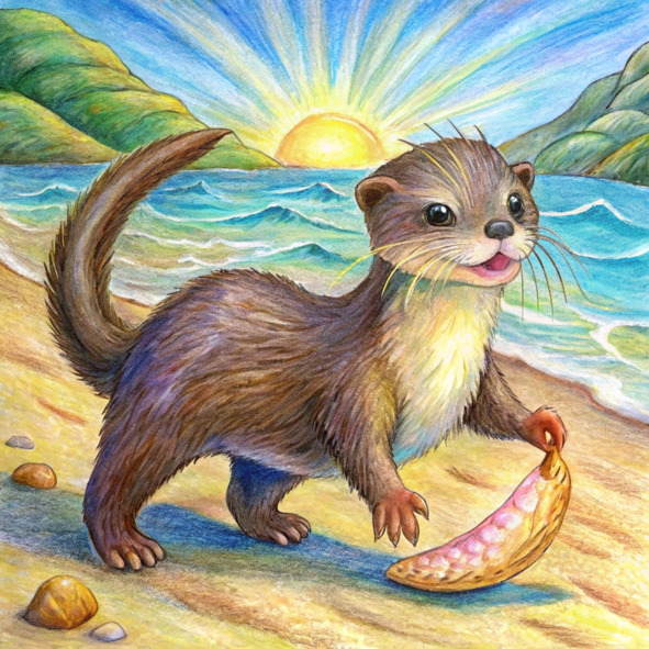 Теплое солнце ласкало шерстку Селены, когда она бежала по песчаному пляжу, ее крошечные лапки оставляли следы на мягком белом песке. Было время каникул, и юная выдра не могла быть счастливее. Бескрайний океан, простиравшийся перед ней, отливал ослепительной синевой под летним солнцем.