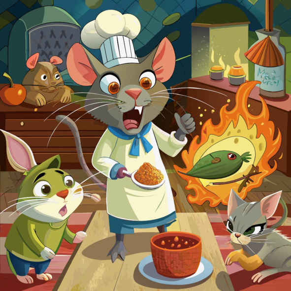 Пораженная мышь Тео застыла как вкопанная, ее сердце бешено заколотилось от страха, когда на нее упала тень повара. Поскольку бежать было некуда и прятаться времени не было, мышь приготовилась к поимке, ее усики дрожали от дурного предчувствия.