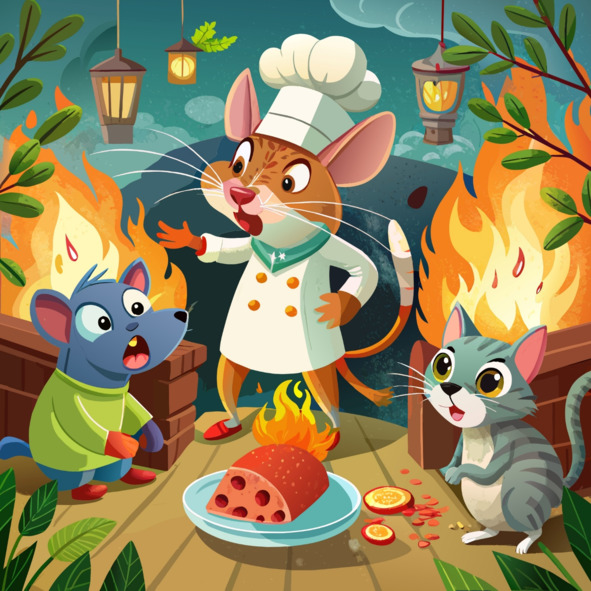 Мышь Тео оказалась в ловушке в руках повара, волна паники захлестнула ее, как прибой. С широко раскрытыми глазами и дрожащими усиками крошечное создание слушало, как грубый голос повара наполнял воздух угрозой, от которой у него по спине пробегали мурашки.