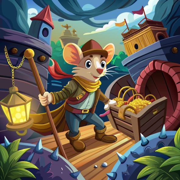 С каждым мгновением мышонок Тео чувствовал, как трепет неизвестности захлестывает его подобно приливной волне. Это было царство пиратов, где опасность и открытия танцевали рука об руку, и мышонок Тео был полон решимости исследовать каждый его дюйм.