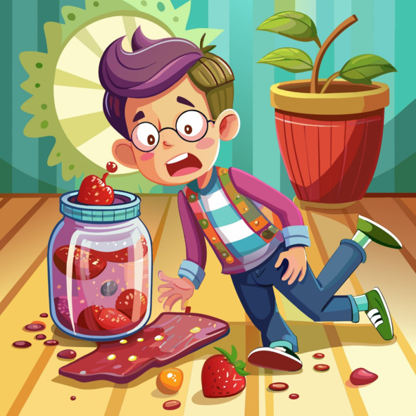 To his surprise, he found an open jar of jam, its lid askew, and a few sticky drops dribbling down the sides. Leo’s nose twitched at the sweet scent of strawberries that wafted from within the jar.