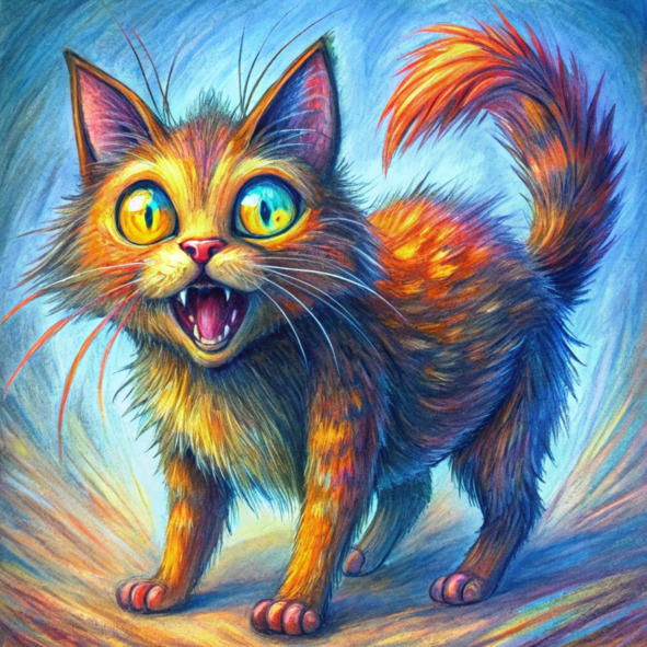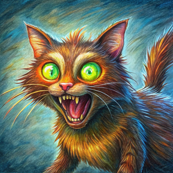 Семейная пуделька Пенелопа, которая раньше с игривым пылом гонялась за бабочками, теперь была приклеена к потолку, бешено лая на невидимых призраков, ее мех светился жутким синим оттенком. Сварливый соседский кот Бакенбард, который когда-то выслеживал птиц с элегантностью охотника, теперь таскался повсюду, выглядя совершенно сбитым с толку, его обычно черный мех отливал необычным зеленым.
