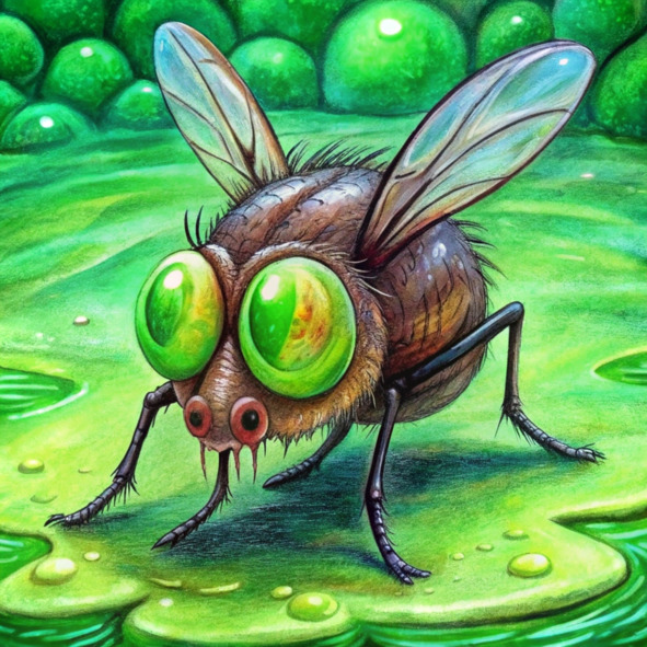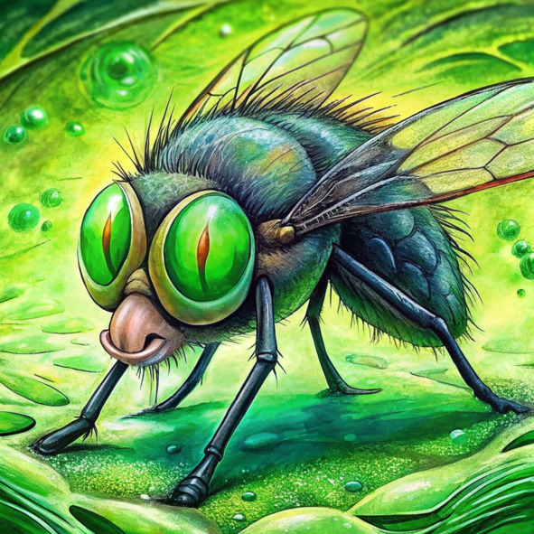 Как раз в этот момент любопытная муха, привлеченная мерцающим свечением зелья, с жужжанием влетела в лабораторию. Муха в своей ненасытной погоне за самым сладким нектаром окунула свои маленькие лапки прямо в лужицу. Словно по волшебству, он начал неистово двигаться, беспорядочно описывая круги, его жужжание достигло почти неистовой высоты.