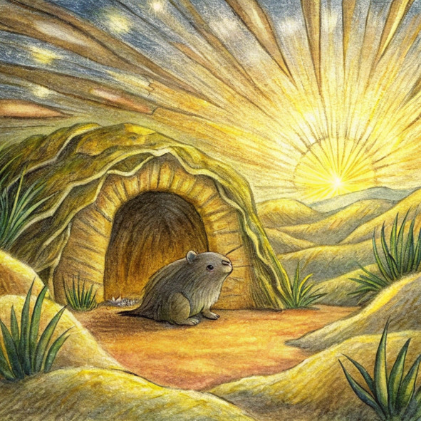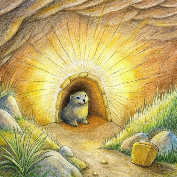 Солнце, стоявшее теперь высоко в небе, наконец-то добралось до уютной норы Акселя. Его теплые лучи проникали через небольшой вход, отбрасывая длинные мерцающие полосы света на земляной пол. Крошечные пылинки танцевали в солнечных лучах, кружась, как крошечные счастливые танцоры.